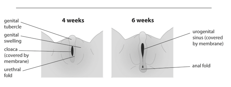 By 5-6 weeks, undifferentiated genitalia form.
