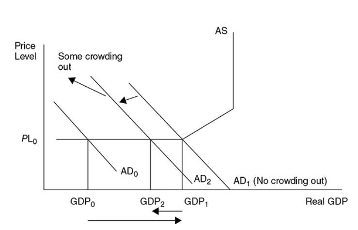 - Expansionary fiscal policy is less effective if government borrowing crowds out private investment with higher interest rates.