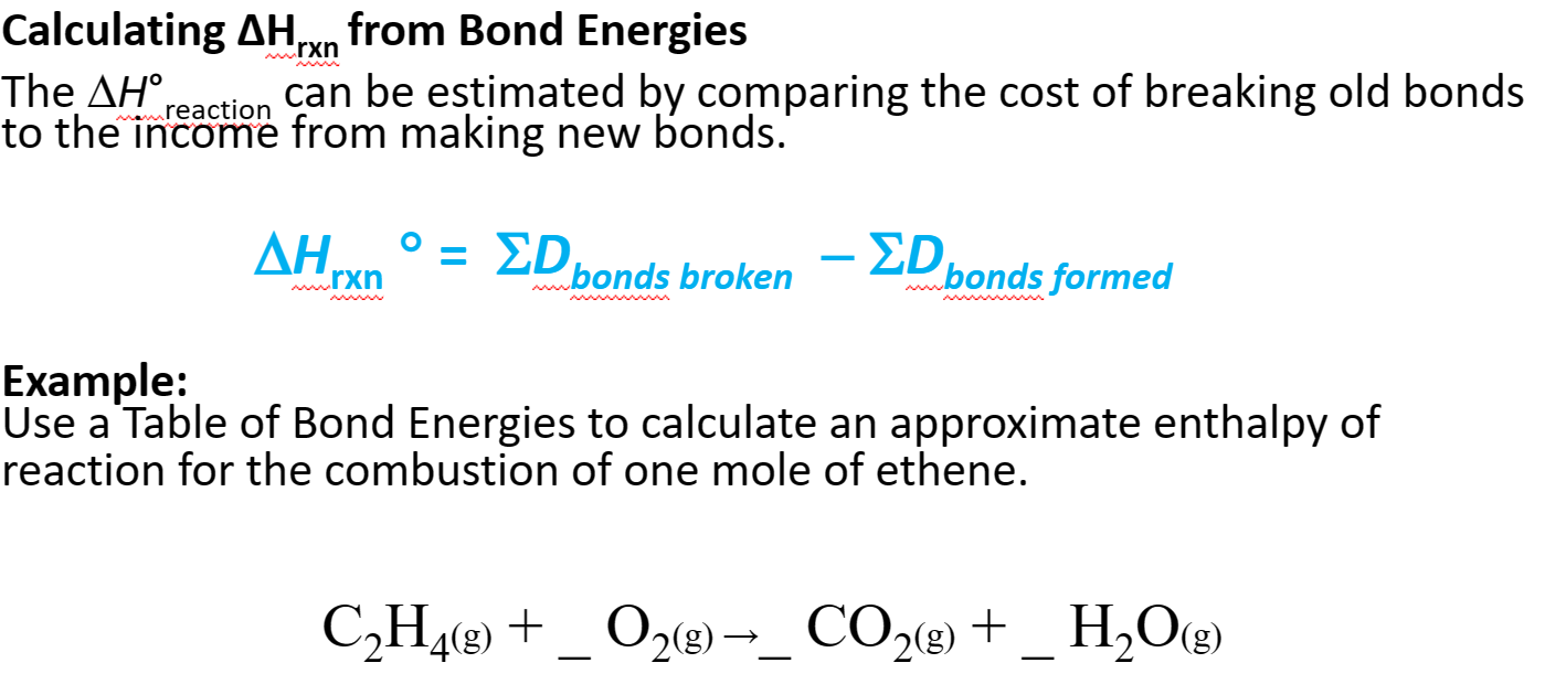 - Calculating 𝚫H rxn from Bond Energies