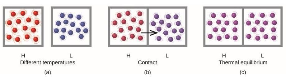 - When two substances are placed in contact, thermal energy will always flow from the high temperature substance to the low temperature substance