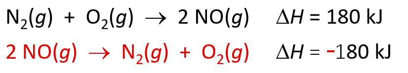 - If a reaction is reversed, 𝚫H sign changes
