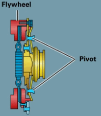 The faster the engine spins, the more weighted the release lever pushes on the pressure plate.