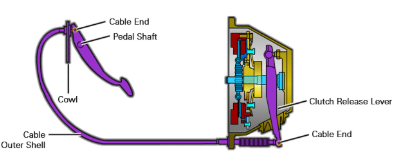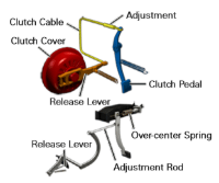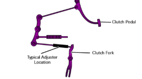 adjustment rod and clutch cable transfers the clutch pedal movement to the clutch