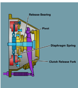 pressing and releasing the clutch pedal moves the pressure plate back and fourth.