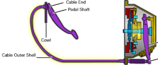 clutch cable connects into a groove or snaps on stud on the clutch pedal