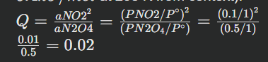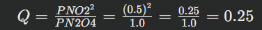Step-by-step example: For N2O4(g)⇌2NO2(g) at 298 K, assume initial partial pressures are PN2O4=0.5 bar and PNO2=0.1 bar.