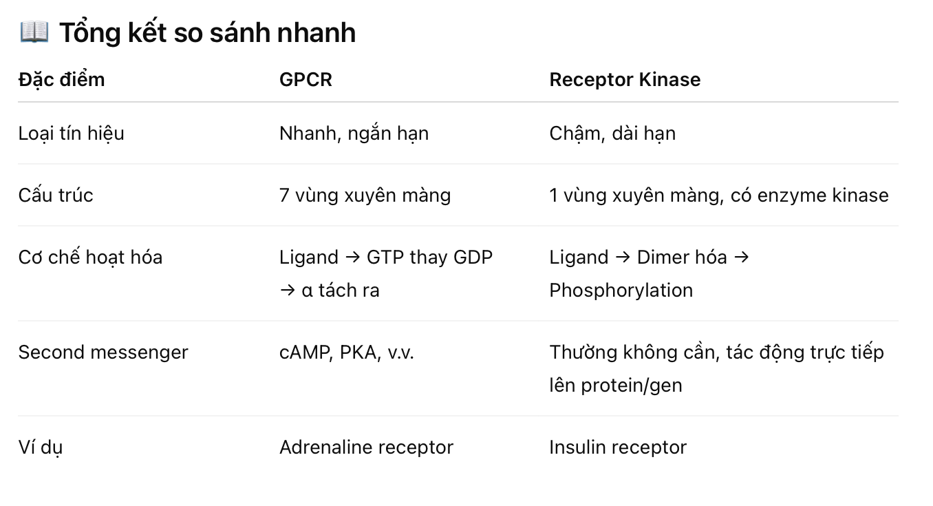 Kéo dài lâu hơn so với GPCR (vì tác động đến biểu hiện gen, không chỉ là phản ứng nhanh).