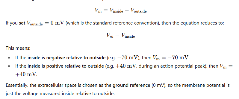 At rest the inside is negative relative to outside (≈ in neurons).