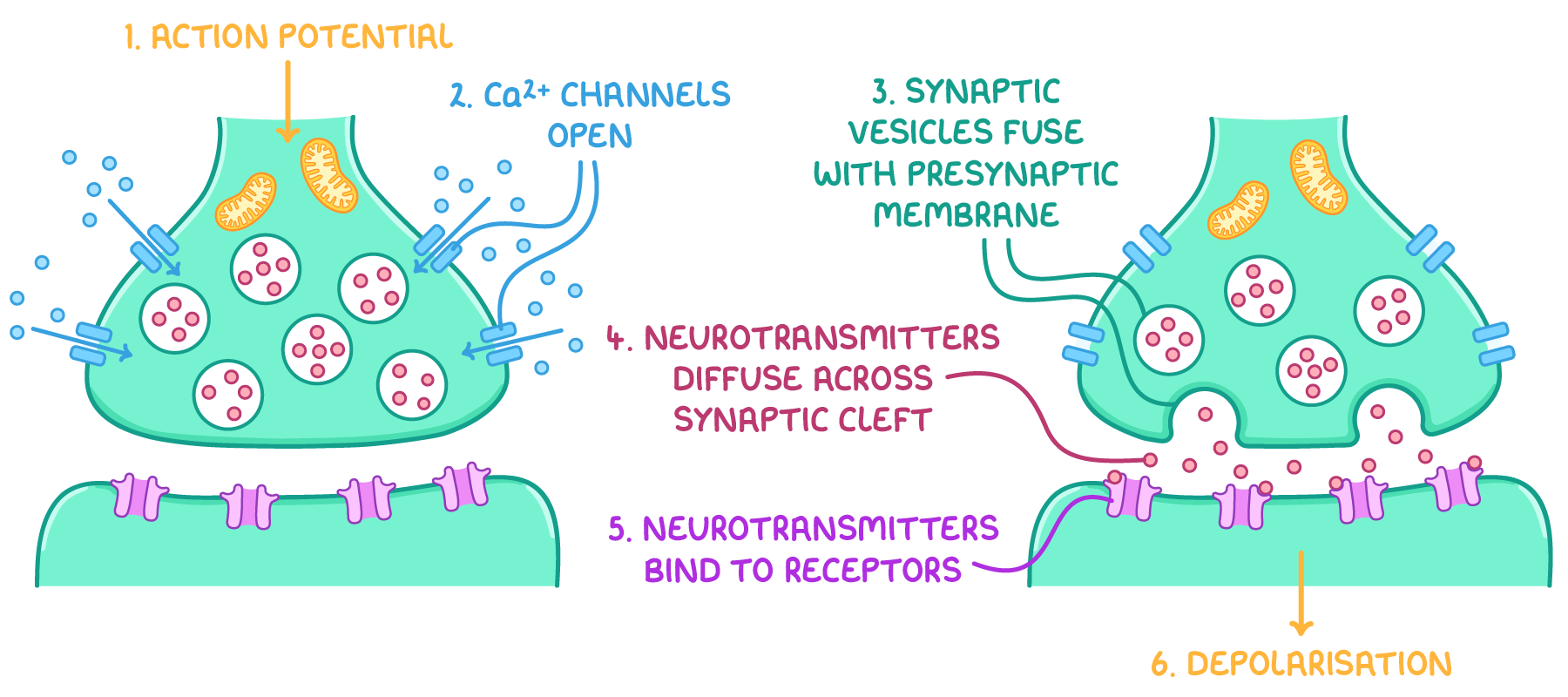 • 3 steps of chemical synapse.