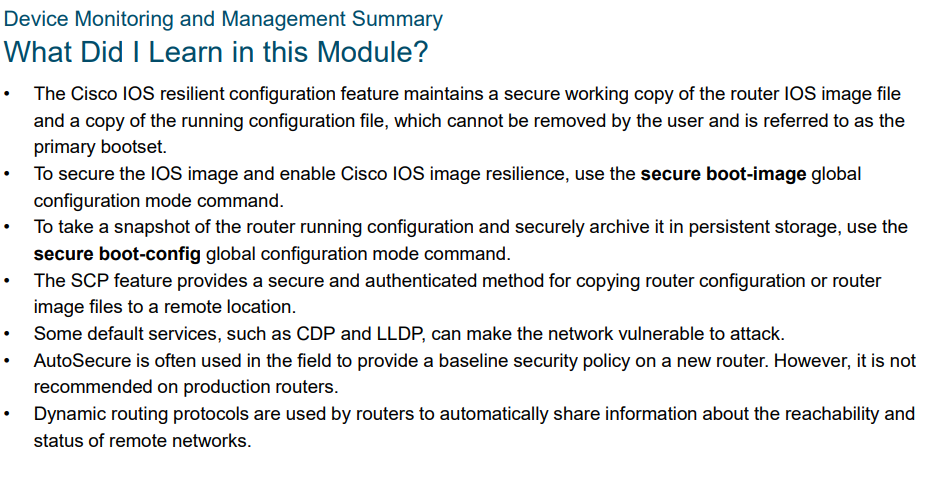• Router Hardening - Ensure that only authorized personnel have access and that their level of access is controlled.