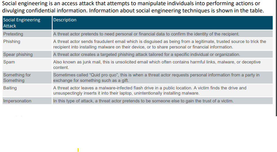 •Access Attacks - Access attacks explox zit known vulnerabilities in authentication services, FTP services, and web services to gain entry to web accounts, confidential databases, and other sensitive information.