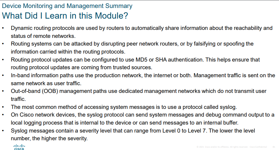 • Important advantages of dynamic routing protocols are the ability to select a best path, and the ability to automatically discover a new best path when there is a change in the topology.
