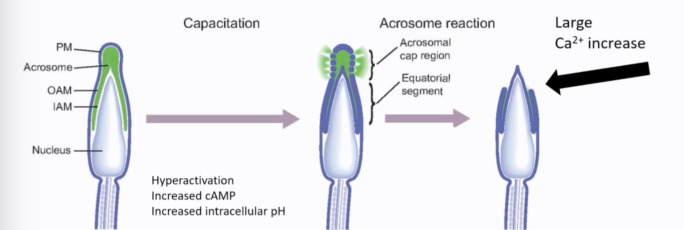 It is thought to occur before the sperm reaches the zona pellucida, possibly triggered by substances like progesterone in the vicinity of the egg. The equatorial segment of the sperm head is typically involved in the subsequent fusion with the oocyte plasma membrane (oolemma).