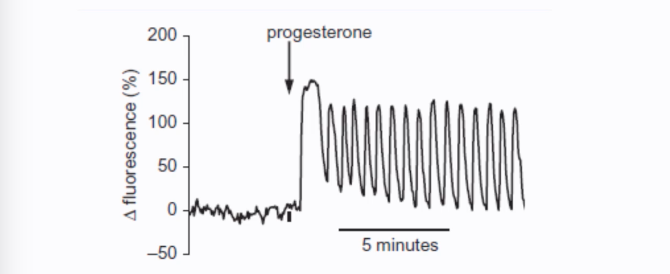 Progesterone can stimulate Ca²⁺ oscillations in human spermatozoa, as shown by patch clamp experiments of individual sperm cells and fluorescence measurements.