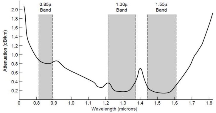 Multi-mode: Light can bounce (50um core). Used with LEDs for cheaper, shorter distance links.