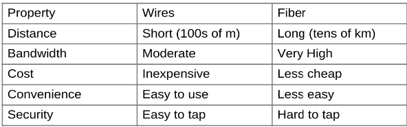 Bandwidth: Wires - Moderate, Fiber - Very High
