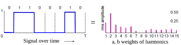 Fourier analysis: A time-varying signal can be represented as a series of frequency components (harmonics).
