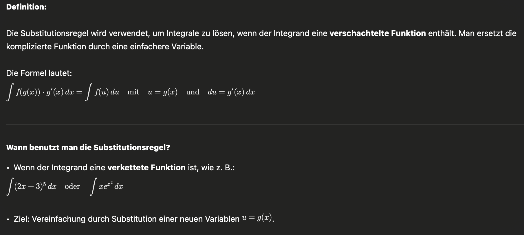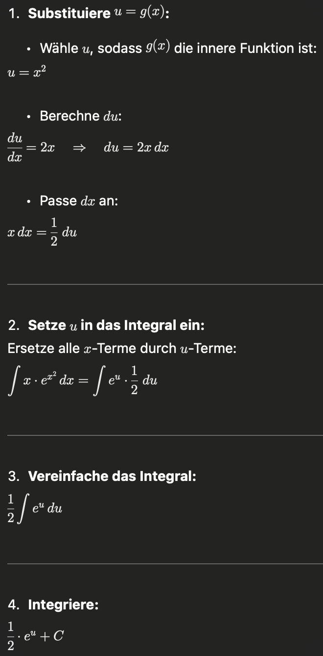 Substitutionsregel - man benutzt bei Substitution von 2 Funktionen (keine Konstante, keine x, aber was schwierigeres)