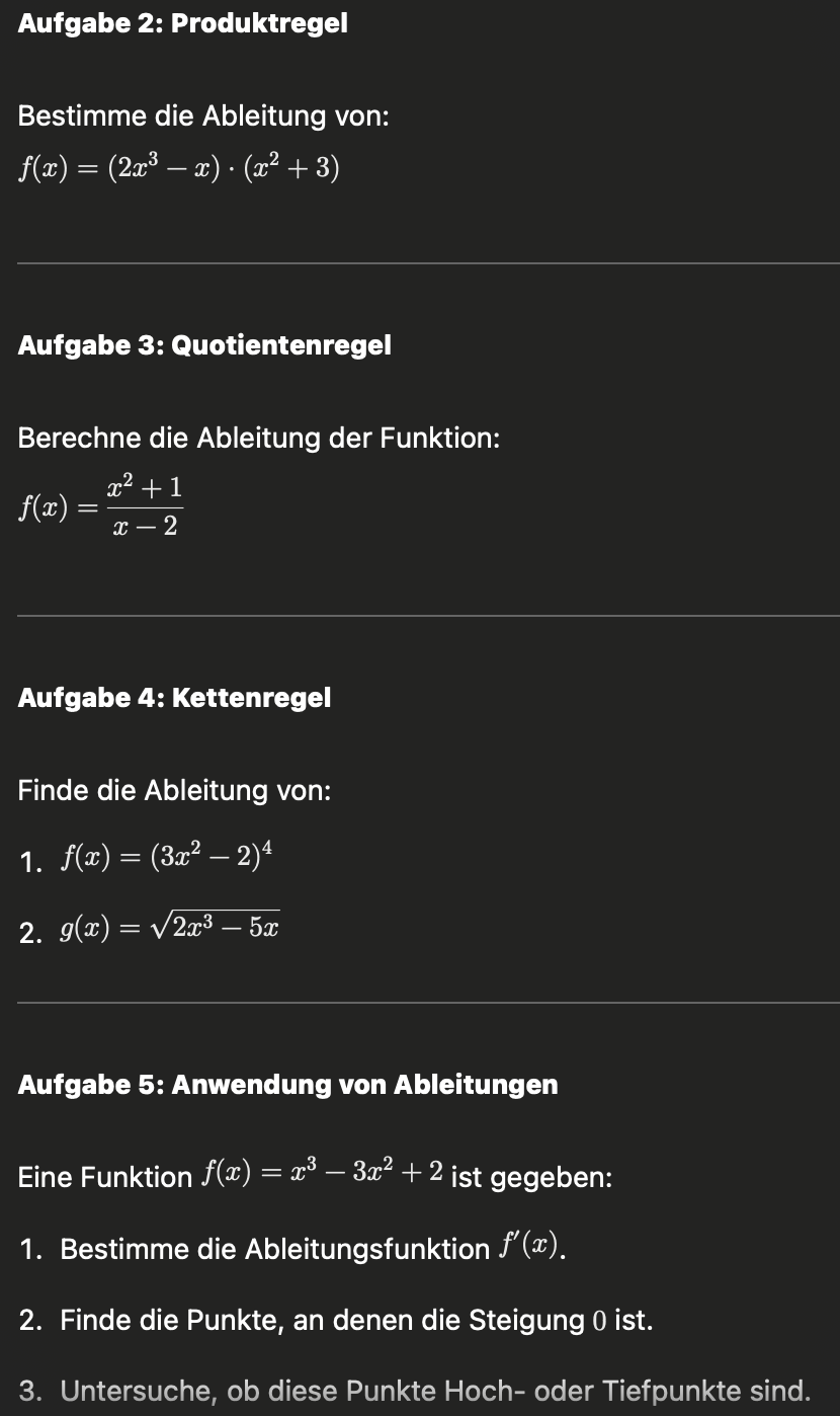 f’(x) | Nullstelle (positiv oder negativ ändert sich) | Extrempunkt (Geschwindigkeit der Geschwindigkeit ändert sich) | Wendepunkt | |||