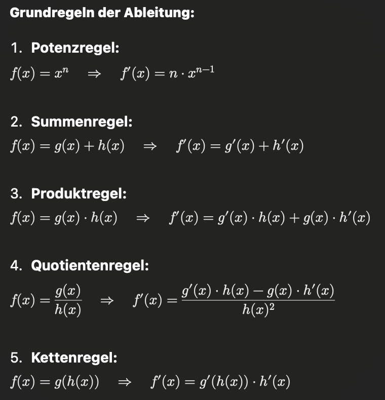 Kettenregel - когда у нас есть внутренняя функция (в данном случае имеется ввиду обычно корень x или логарифм или x в степени, sin/cos) Все что влияет на число без другого числа - функция. И короче если есть такая функция и при этом У НАС НЕ БАЗОВЫЙ X (z.B x+1), то мы ableiten как обычно (базовые проавила) и еще умножаем на ableitung чисто функции икса