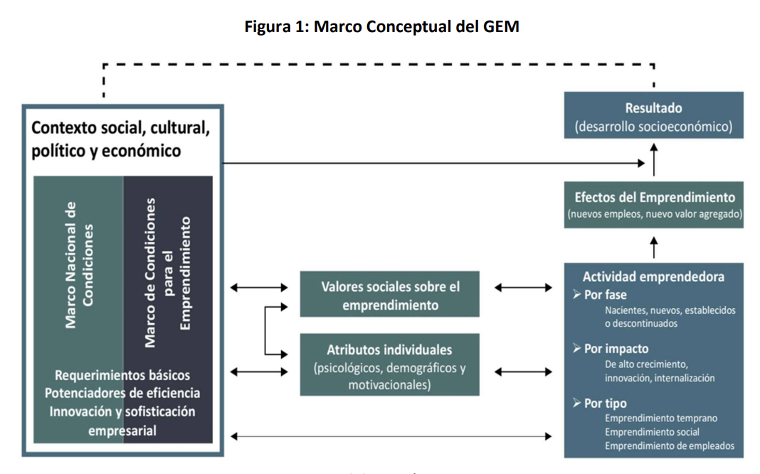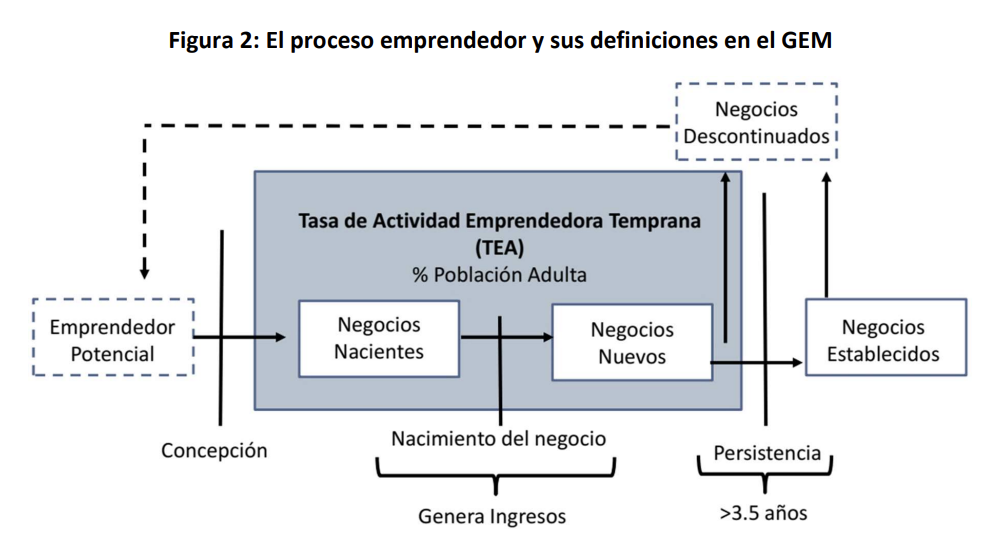 El GEM considera el emprendimiento como un proceso que inicia desde que una persona tiene la idea de poner un negocio hasta que la relación con este se cierra.