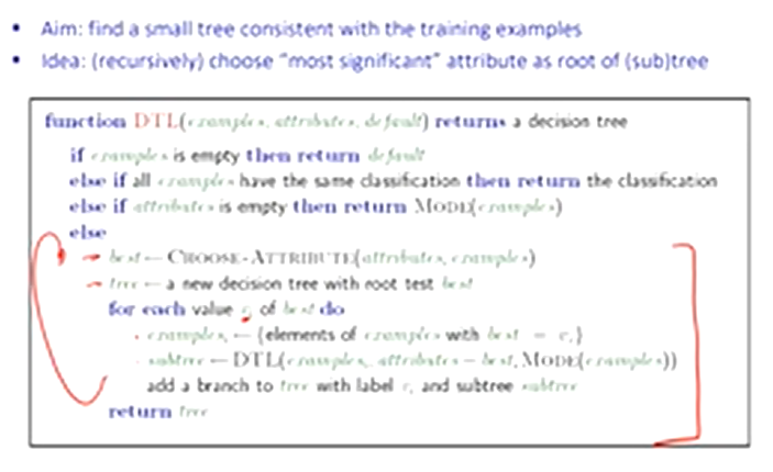 a good attribute splits the examples into subsets that are (ideally) “all positive” or “all negative”