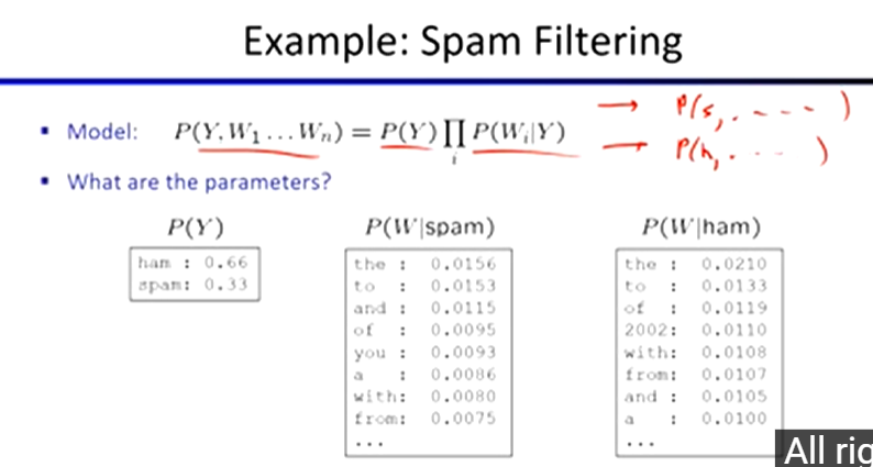 parameters: the probabilities P(X | Y), P(Y)