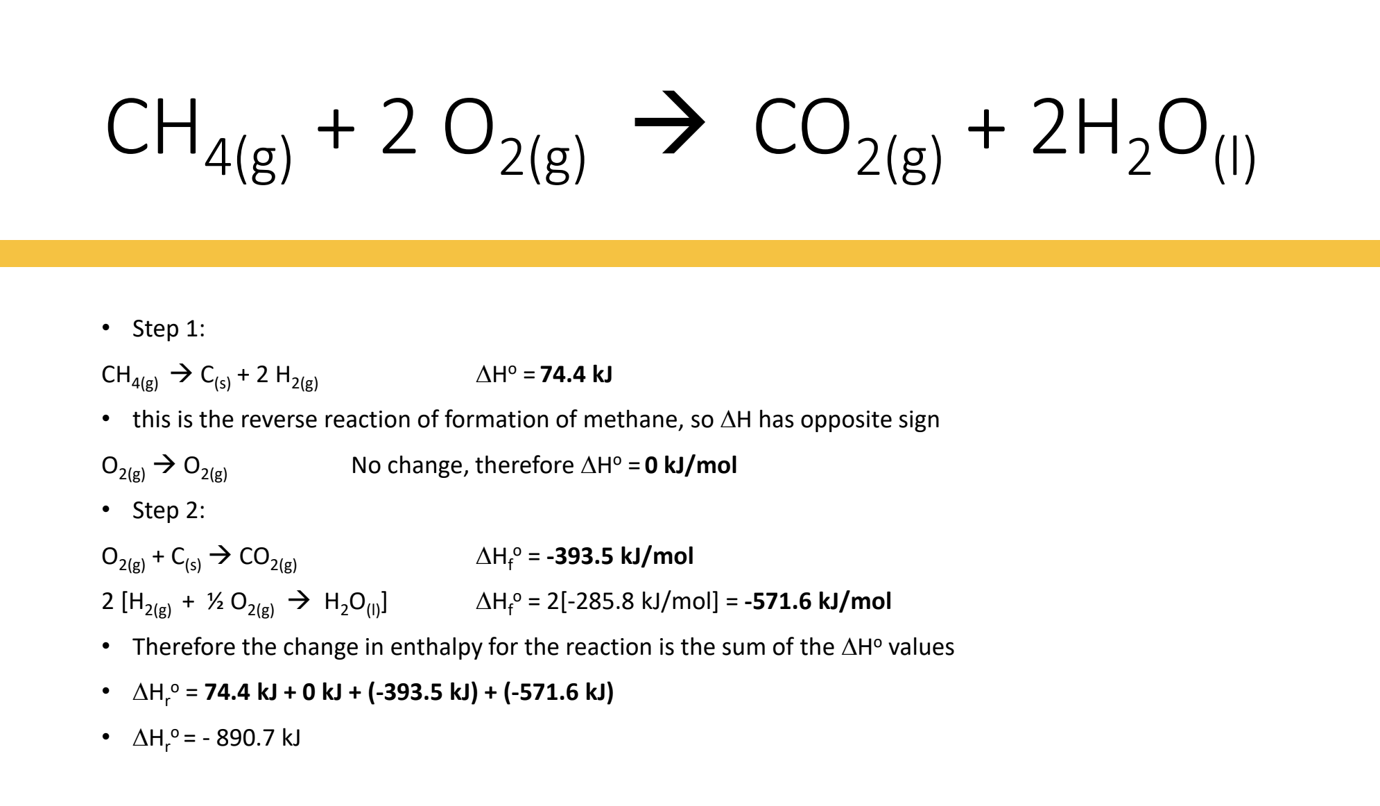 - Standard enthalpy of formation of a compound is the change in enthalpy that occurs when 1 mol of a compound is formed from its elements in their standard states   * Standard State: a substance in its most stable state at SATP (25°C, 100 kPa) – state on the periodic table     * Standard enthalpies of formation for Al2O3(s) is -1675.5 kJ/mol     * Standard Enthalpy of formation for aluminum chloride is -704.2 kJ/mol
