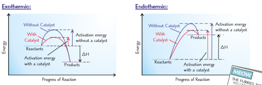 Profiles show how a catalyst affects activation energy in exothermic and endothermic reactions.