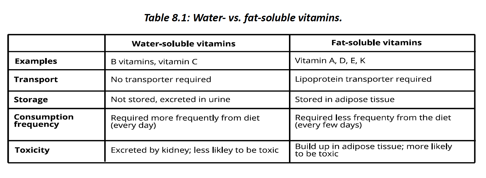 Carbohydrates, lipids, protein and vitamins are organic nutrients. water and minerals are inorganic because they do not contain carbon.