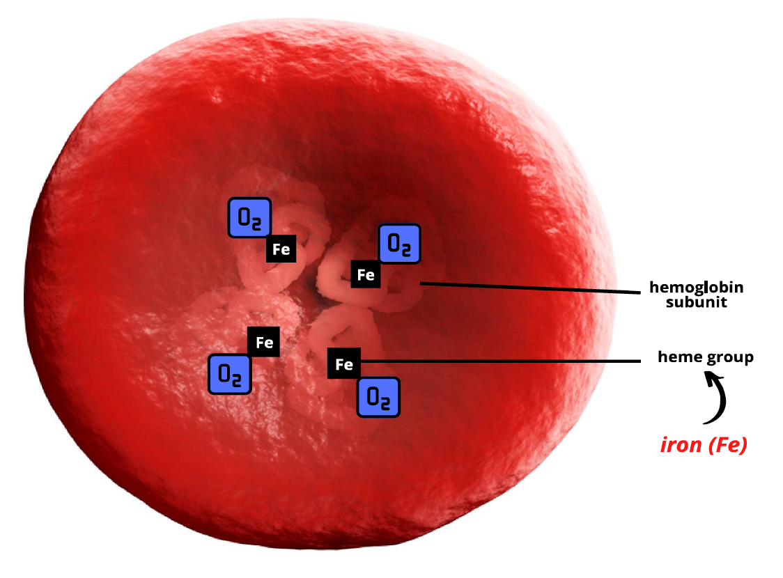 Iron is an essential component of the two proteins hemoglobin and myoglobin, which help transport oxygen in blood and muscle, respectively. Iron deficiency compromises oxygen delivery and can progress to iron deficiency anemia, promotes tiredness and decreased exercise capacity.