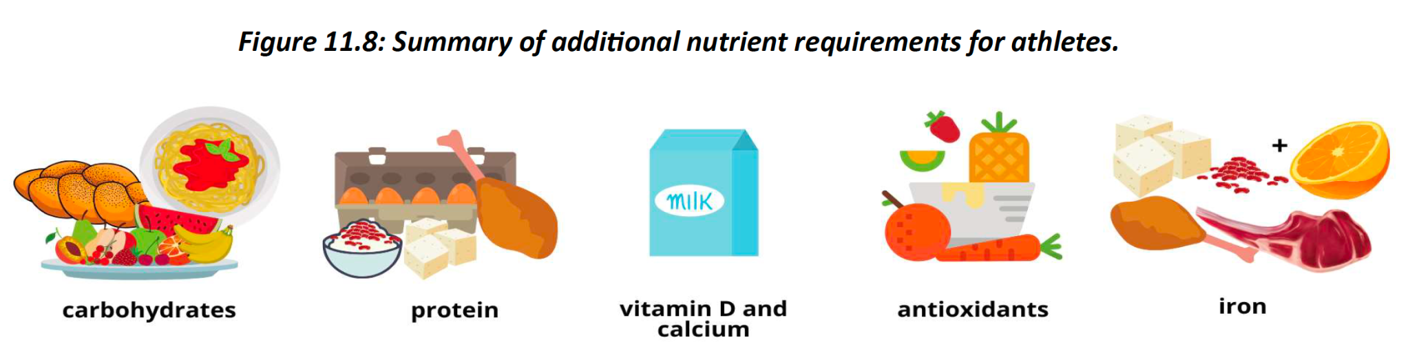 Athletes have higher requirements for energy, carbohydrate, protein, antioxidants, fluids and micronutrients. Also, the timing of their consumption can provide an added benefit to performance and recovery.