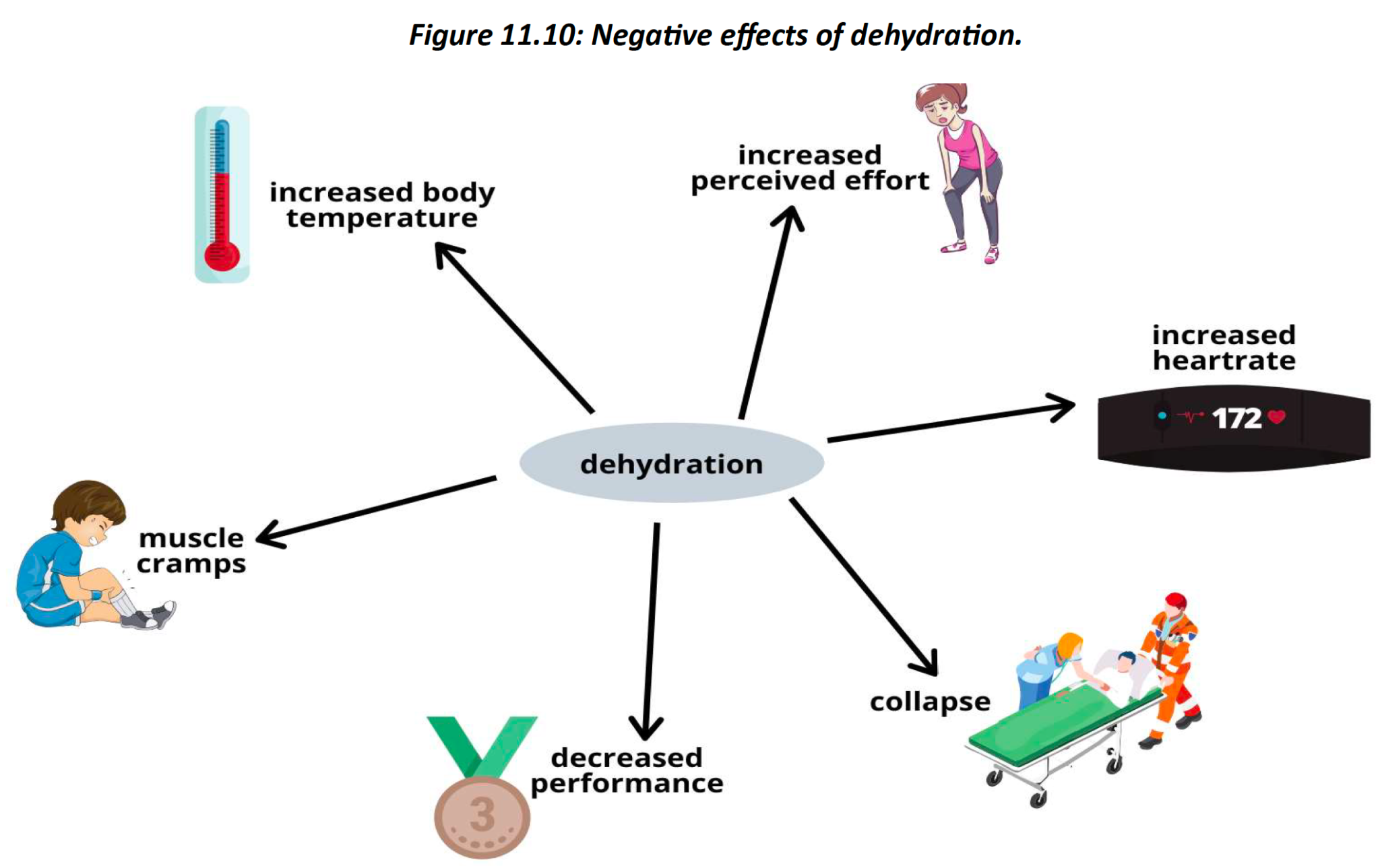 To reduce the risk of dehydration, sufficient water intake is also recommended before exercise. Individual water needs vary according to physiology and the environmental temperature.