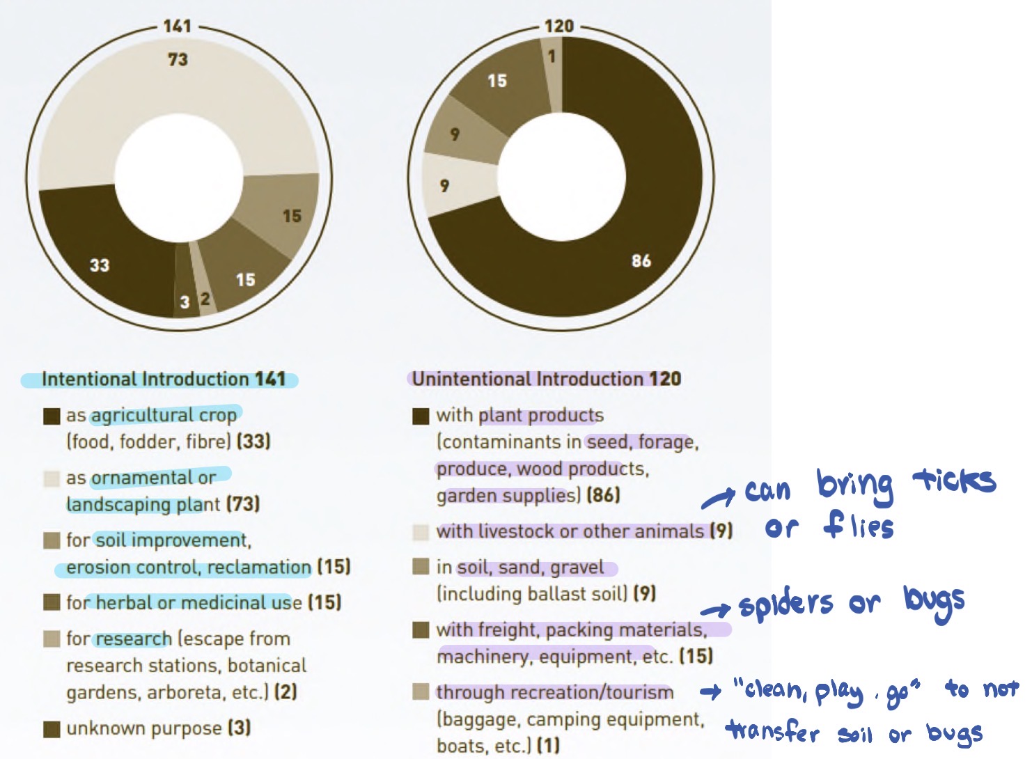 There are a vast number invasive plant species across Canada, with the least amount of them in the Northern parts of the country. This could be due to less shipment of grain, less people and colder weather