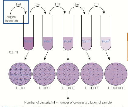 In most cases, when a plate is inoculated a solid mass of microbial growth is present, you cannot count the individual colonies, this is overcome by carrying out a serial dilution or the original culture broth so you can count the number of colonies.