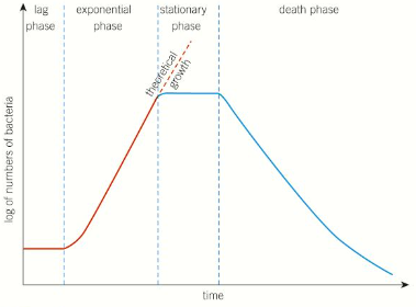 log or exponential phase - is when the rate of bacterial reproduction is close to or at its theoretical maximum