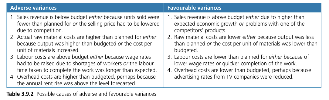Variance analysis - the process of investigating any differences between budgeted figures and actual figures