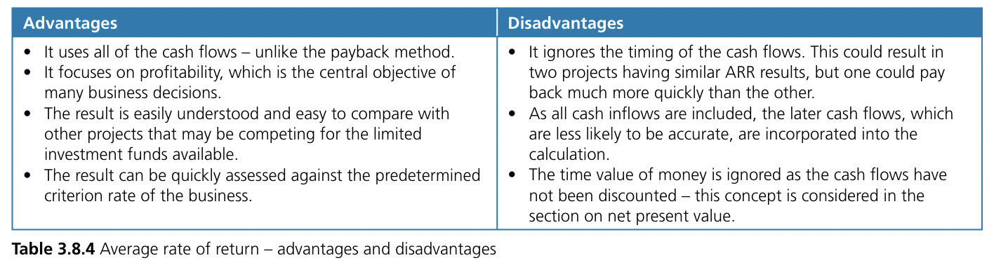 Average rate of return (ARR) - measures the annual profitability of an investment as a percentage of the initial investment
