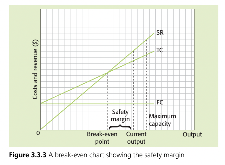 Margin of safety - the amount by which the output level exceeds the break-even level of output