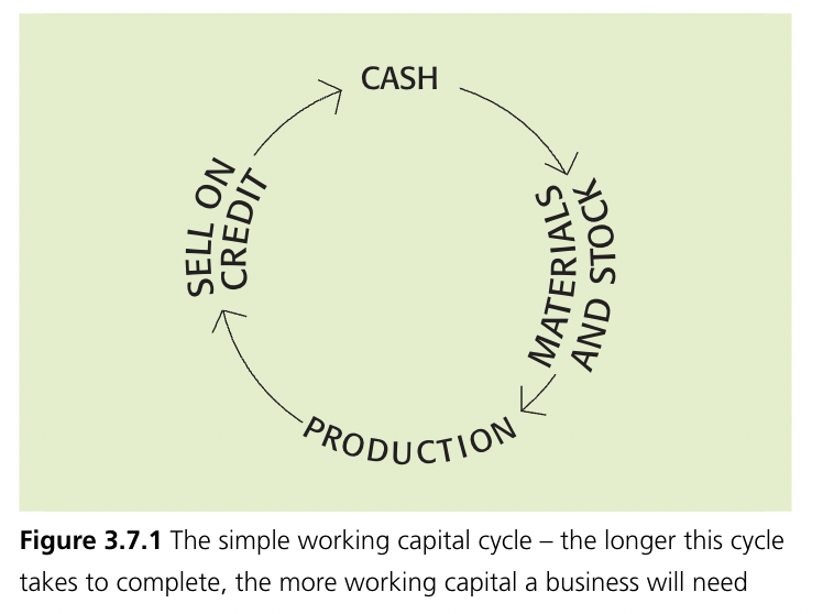 Working capital cycle - the period of time between spending cash on the production process and receiving cash payments from customers