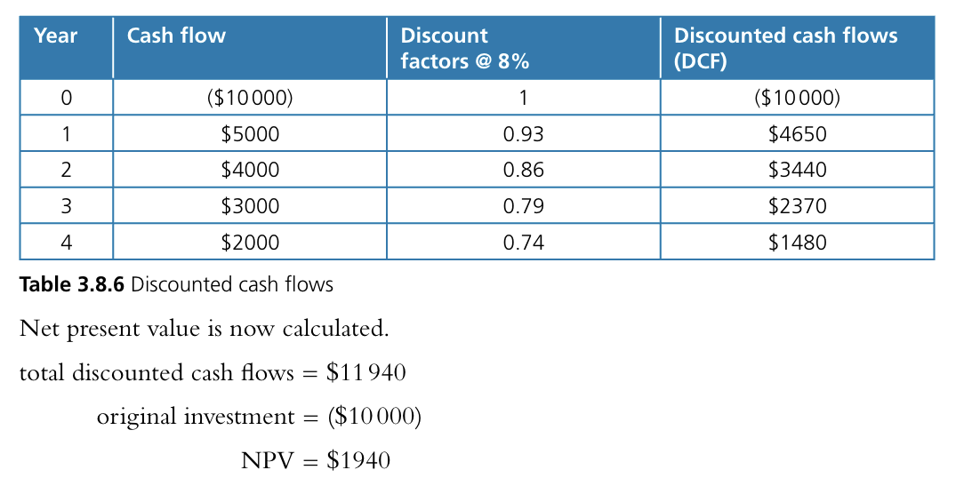Stages of calculating NVP: