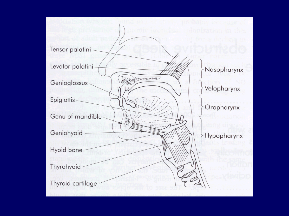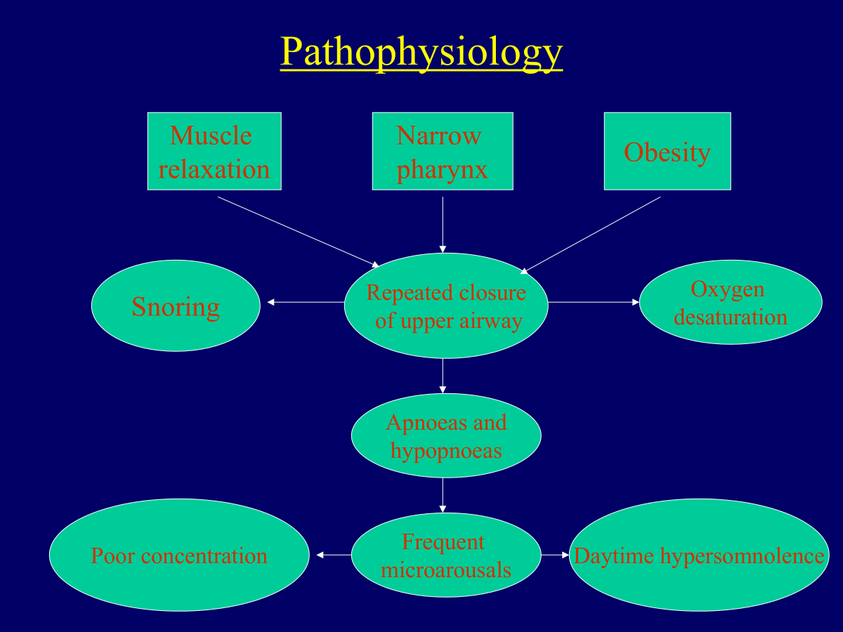 sleep apnoea combination of muscle relaxation, narrow pharynx, obesity