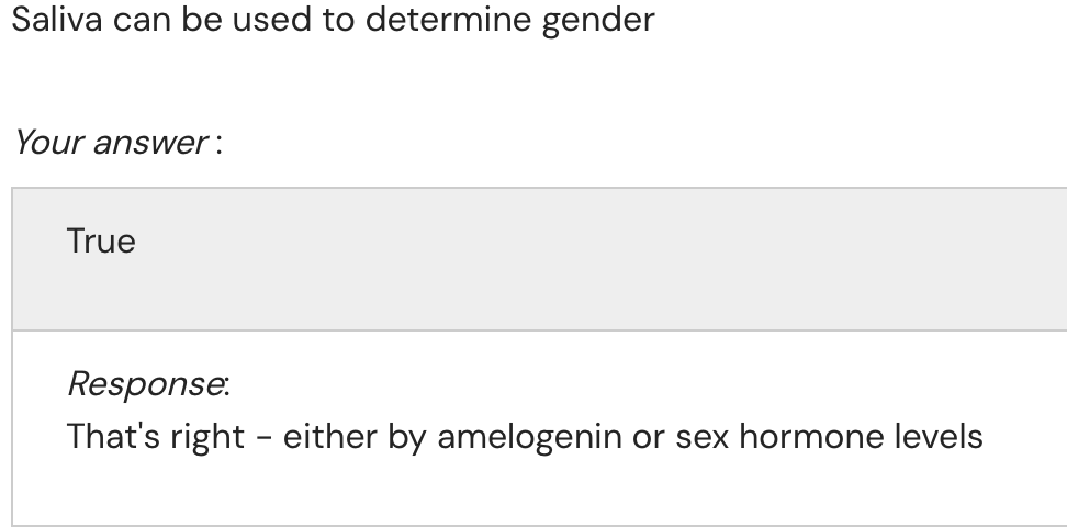 Sex determination: amelogenin gene, sex-hormone profiling.