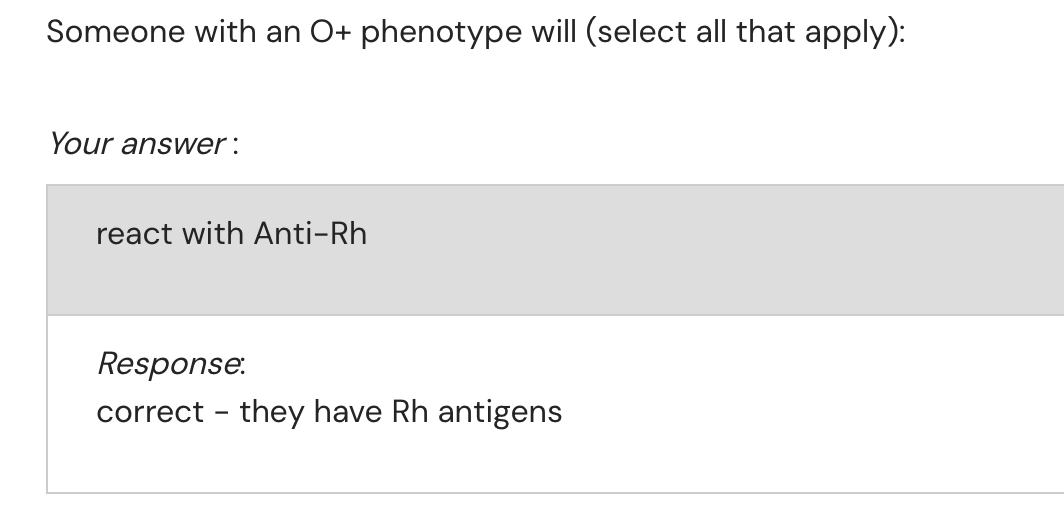 The Rh(D) antigen designates blood as positive (+$) or negative ($-), such as O(^{+}$) or O(^{-}$).