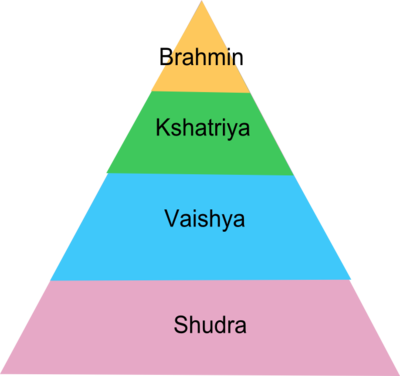 Man kan likna kastsystemet vid en stege. Från allra första början fanns det bara 4 olika kaster. Högst upp och allra mäktigaste och finaste var prästerna, som kallades brahminer eller brahmaner. Därefter kan ==l==%%edare, ämbetsmän%% och %%militärer.%% I tredje kastet fanns bönder, hantverkare och köpmän. I det fjärde kastet var det till sist arbetare och tjänare.