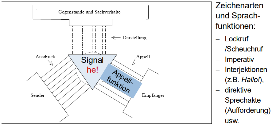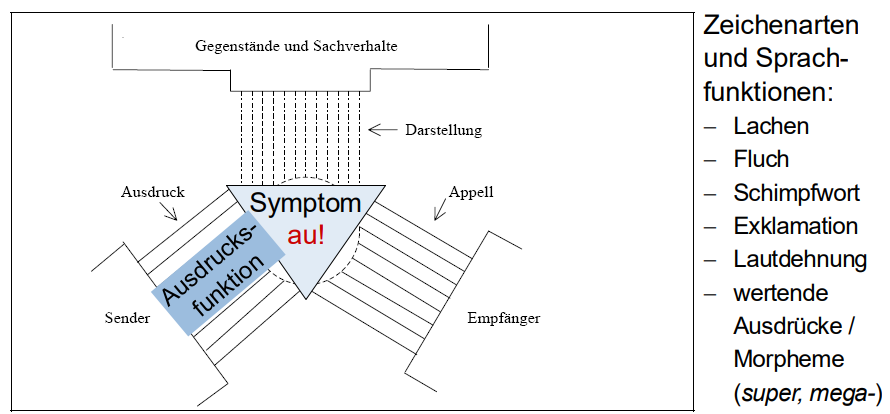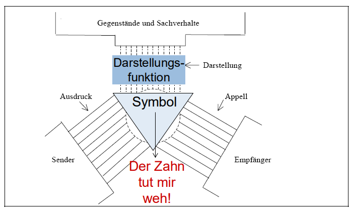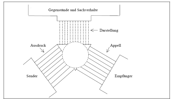 Organon-Modell: Bühler’s Modell der Sprachfunktionen (Darstellung, Ausdruck, Appell).