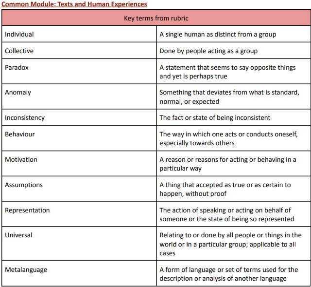 Key Terms from Rubric