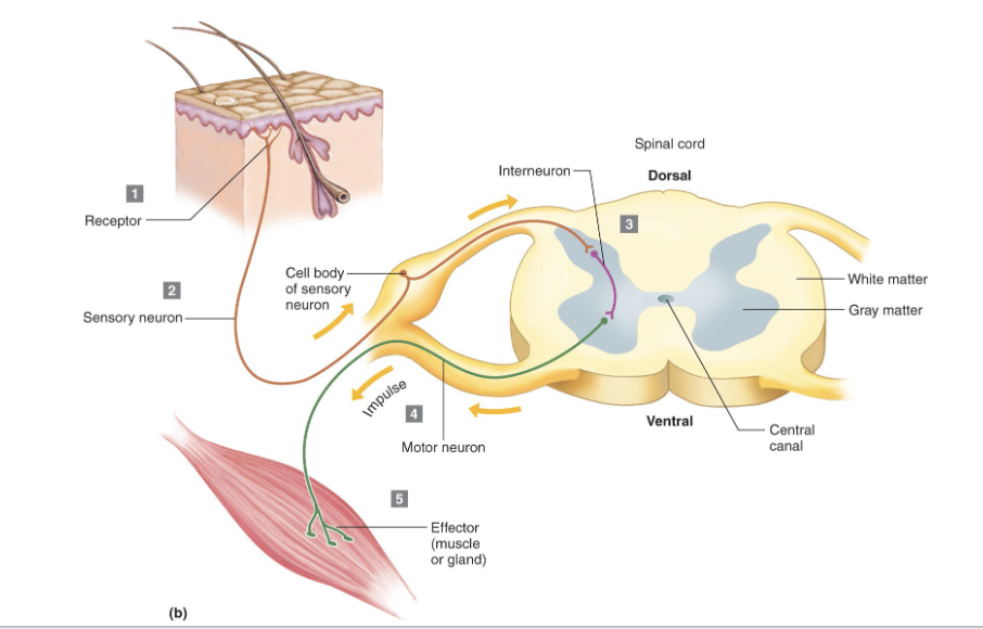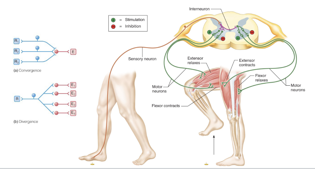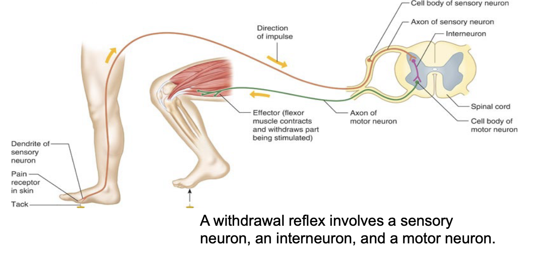 a withdrawal reflex involves a sensory neuron, an interneuron, and a motor neuron