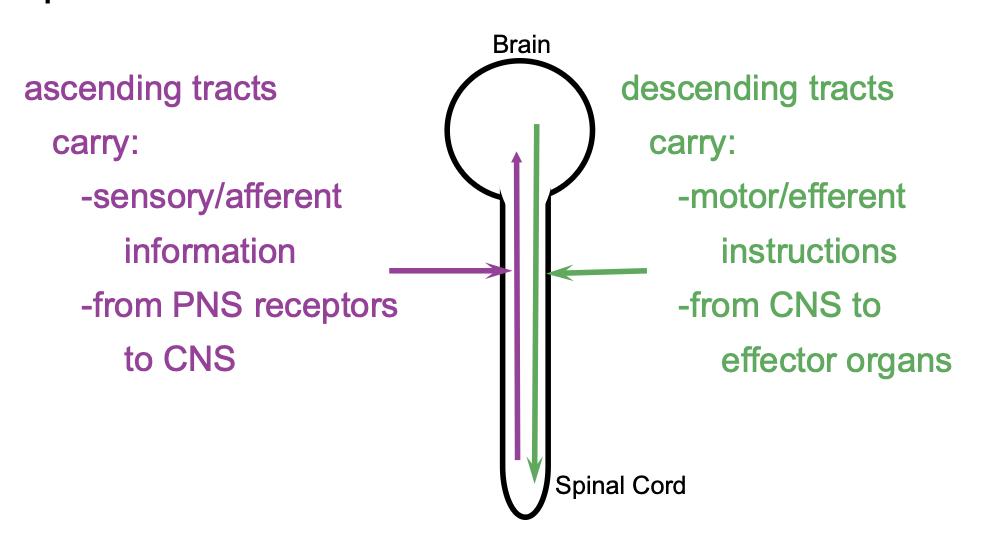 Tract- collection of nerve fibers in the CNS (usually myelinated-white matter)