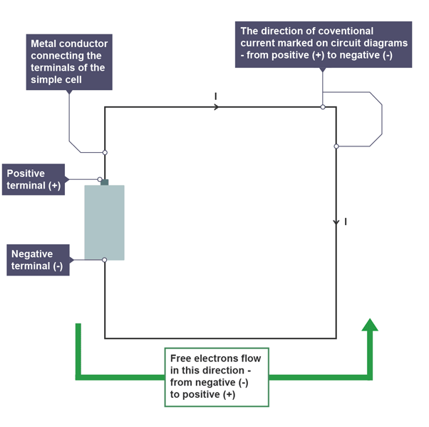 An electric cell (often called a battery) can supply this energy and make free electrons move in a metal conductor connected between its two terminals